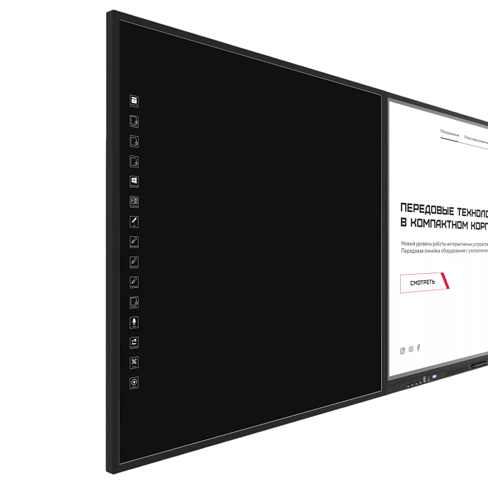 - он включает центральную сенсорную панель и две дополнительные доски - маркерные или меловые, размещенные по бокам;