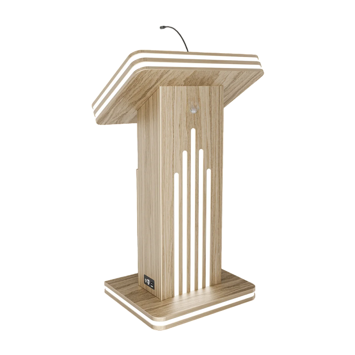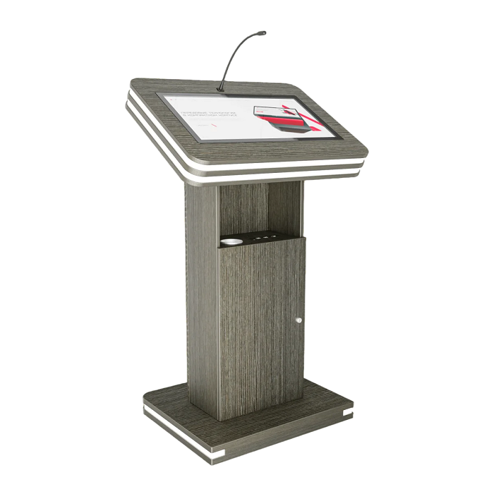 Интерактивная трибуна Light 23,8" — стильная модель, которая украсит любой бизнес-форум и конференцию. Встроенные микрофоны передают звук на большую аудиторию, удобный интерактивный дисплей с мультитач-системой позволяет отображать необходимую информацию не только для спикера, но и для зрителей, передавая ее на большой экран. Помимо этого, в трибуне есть полочка для воды, а также внешние разъемы. Яркий дизайн корпуса со светодиодным узором не сможет оставить никого равнодушным.