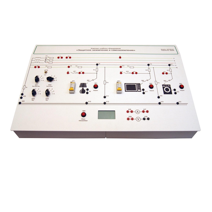Учебный комплект позволяет исследовать методы и устройства защитного заземления и зануления оборудования в электрических сетях напряжением до 1000 В с изолированной и заземленной нейтралью, определять эффективность средств заземления и зануления при защите от поражения электрическим током.